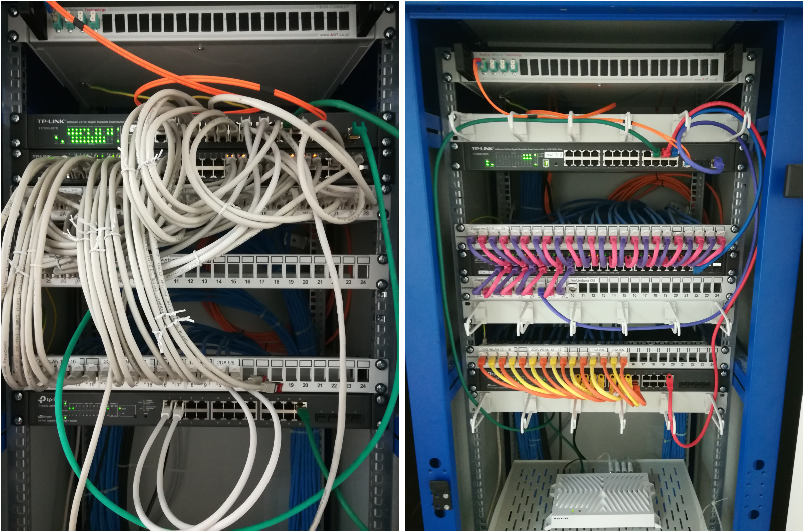 Die Kabel im Netzwerkschrank sind entweder: