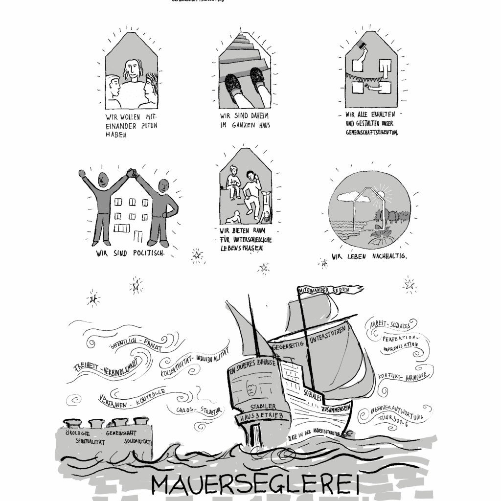 In einem Prozess wurde seit 2023 an der neuen gemeinsamen Ausrichtung, den Leitsternen der Mauerseglerei, gearbeitet. Diese Vision und die weitere Bearbeitung zu beschließen, war ein Meilenstein in unserer Gemeinschaftsentwicklung. Die Leitsterne sollen uns Orientierung geben und laden uns ein, uns als Gemeinschaft weiterzuentwickeln. (Plenumsbeschluss April 2025)